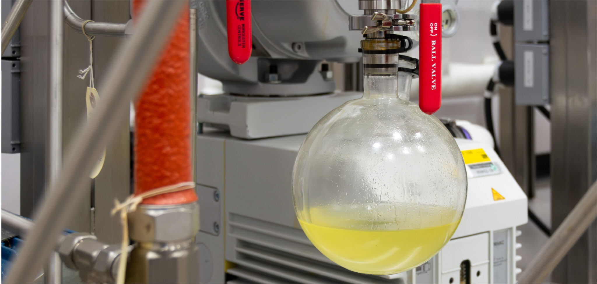 The filtered methanol solution is then put through a falling film evaporator to remove methanol and collect the full spectrum oil. The oil is then heated under vacuum to remove any residual solvents, leaving behind a high-quality full spectrum oil with approximately 60-70% CBD content.